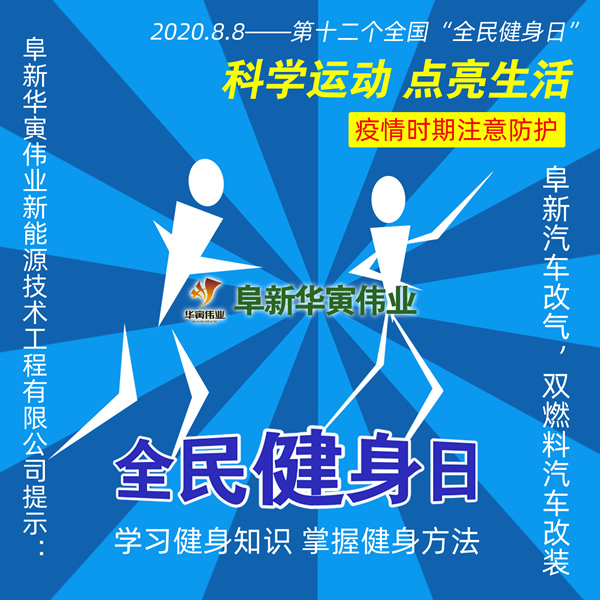 阜新華寅偉業新能源技術工程有限公司提示:2020.8.8是第十二個“全民健身日”,感受體育精神,科學健身。歡迎您瀏阜新華寅偉業新能源技術工程有限公司網站!阜新華寅偉業新能源技術工程有限公司:阜新汽車改氣,雙燃料汽車改裝,引進意大利技術,阜新華寅偉業竭誠服務,聯系電話:0418-6527222